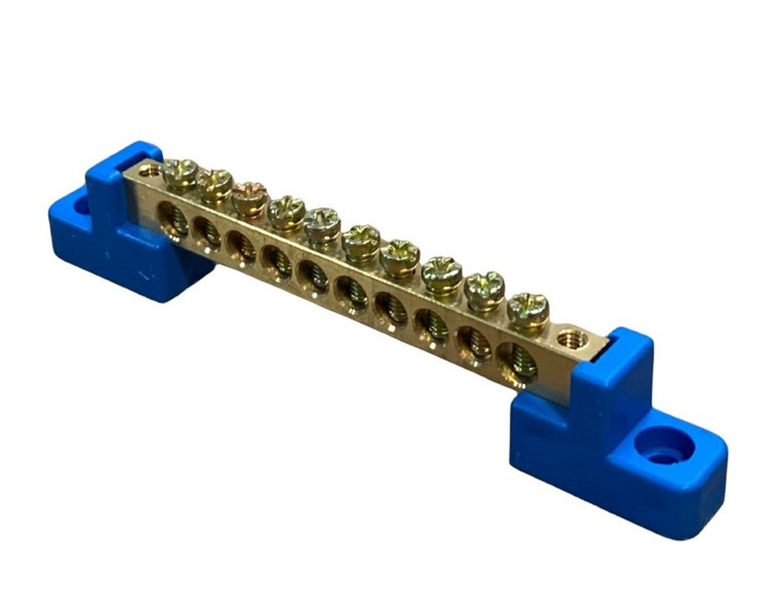1 Barramento Borne Neutro Parafuso Azul 10 Vias